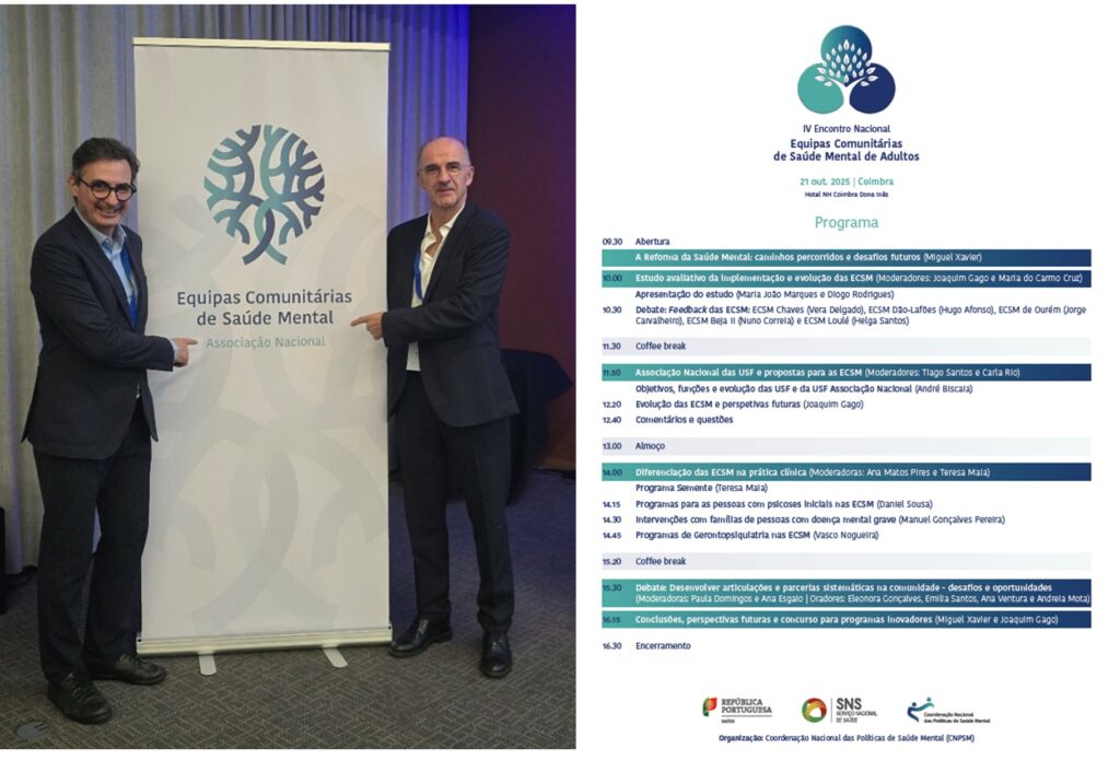 A USF-AN marcou presença no IV Encontro Nacional de Equipas Comunitárias de Saúde Mental de Adultos que se realizou em Coimbra em outubro de 2025, a convite de um dos coordenadores para a implementação de Equipas Comunitárias de Saúde Mental para os adultos no país e membro da Coordenação Nacional do Programa de Saúde Mental, o psiquiatra Joaquim Gago. A ideia é, num futuro próximo, constituir uma Associação de Equipas Comunitárias de Saúde Mental e, por essa razão, queriam ouvir a experiência da USF-AN.